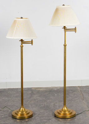each having a swing arm over a cylindrical standard terminating in a circular foot.