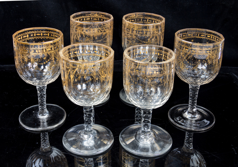 each having gilt decoration and faceted stems, unmarked.