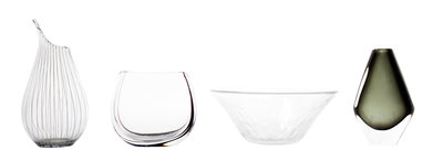 of tapering form together with an Orrefors vase, a Kosta vase, and an unmarked vase with linear decoration.