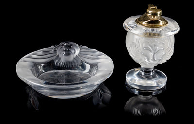 A Lalique Molded and Frosted Glass Smoker's Set