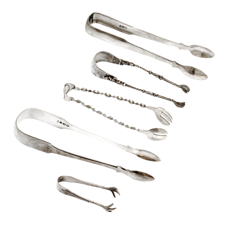 A Group of Five Silver Tongs