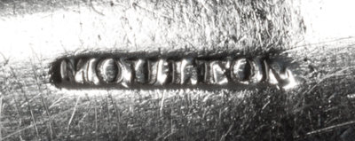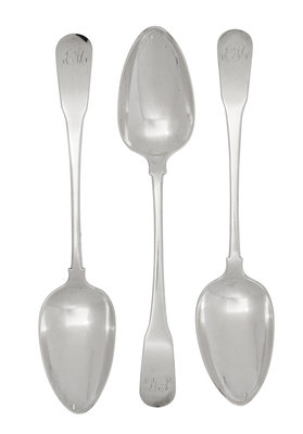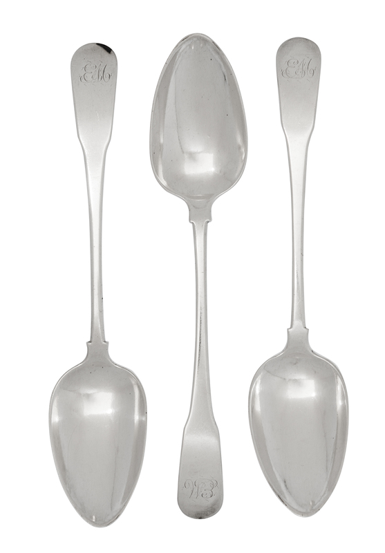 each with a rounded downturned handle bright cut and engraved with script initials EM