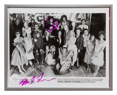 all featuring the actor Michael Lerner, each signed or inscribed by Lerner and other individuals in the film. All items are framed and include posters for the films L'angiscia,Godzilla, Up For Grabs [also signed by Megan Dodds, Daniel Pino, SianThomas and Tom Irwin], Fuga Da Absolom,National Lampoon's Class Reunion, Barton Fink.