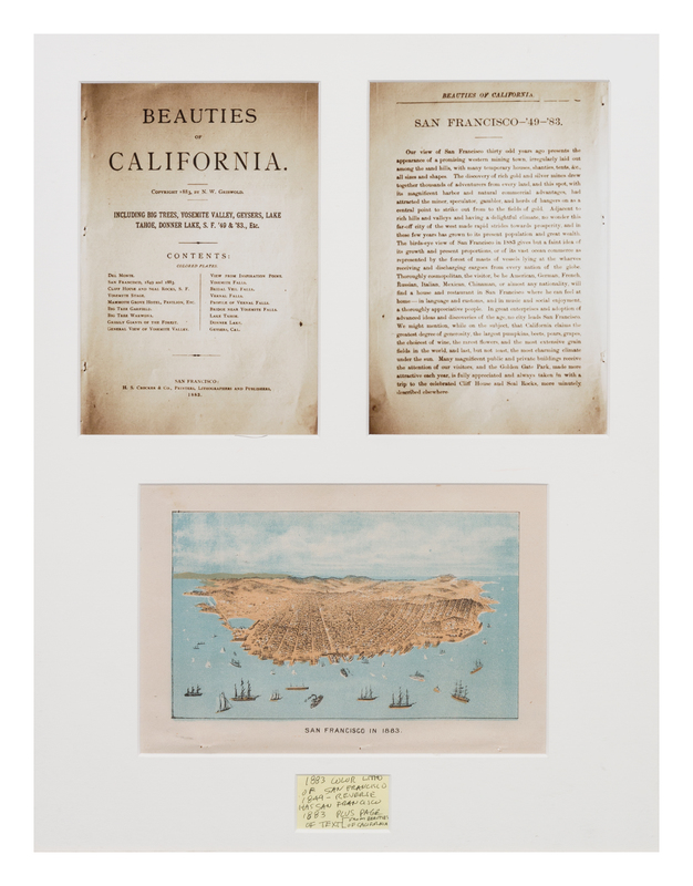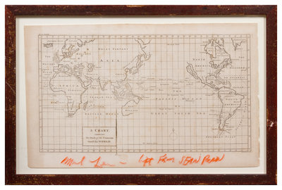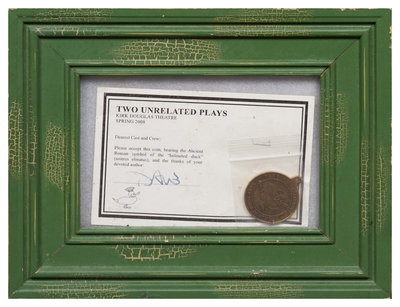 gifted by numerous celebrities to the actor, Michael Lerner, many signed and inscribed. All items are framed and include a lithograph of San Francisco, a prop cell phone, a science fiction scene print, a design sketch for a Mock-Turtle costume, a small medallion, a world map and a hand colored lithograph of children playing hockey.