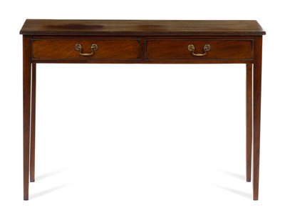 having a rectangular top with a reeded edge over a plain frieze, raised on square tapering legs.