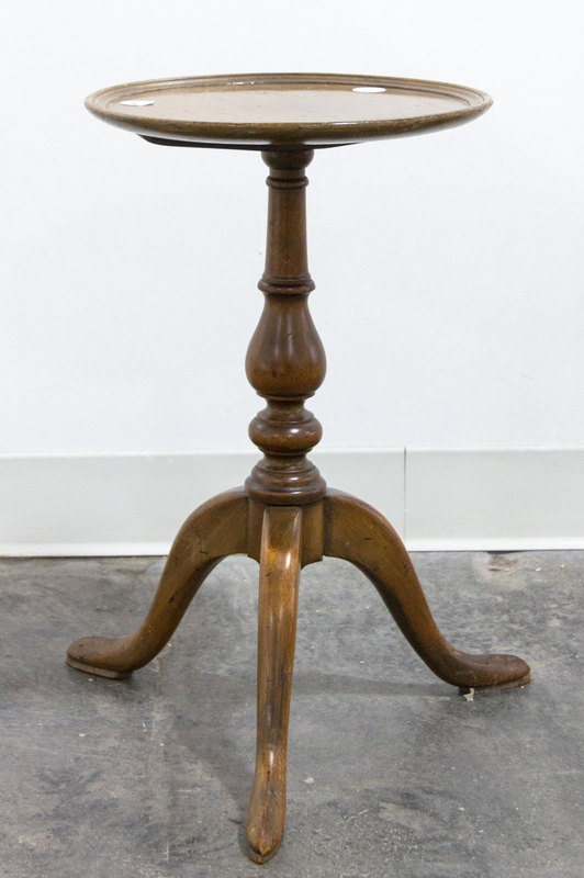 having a circular dish top, set on a turned standard raised on a tripartite base.