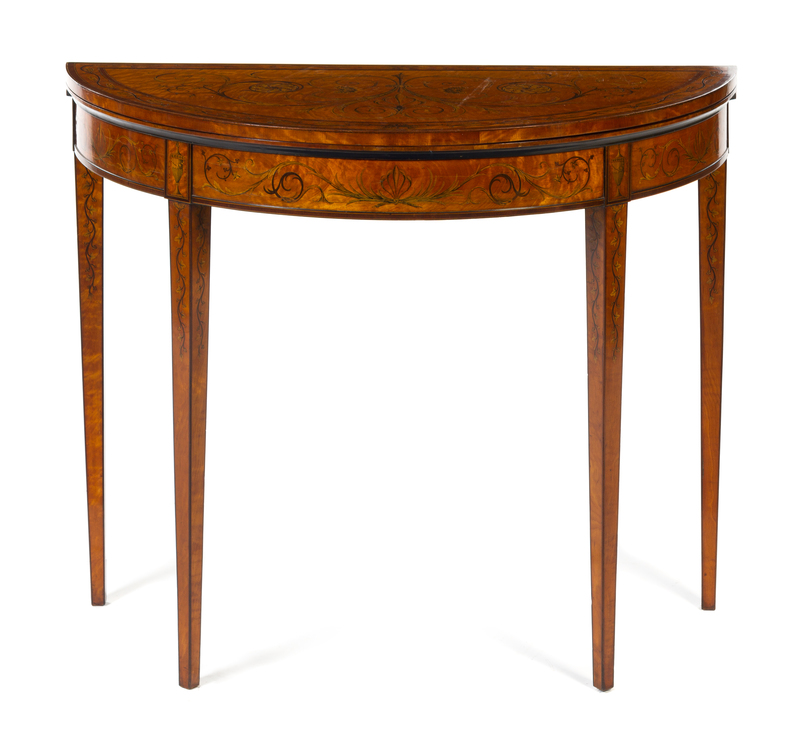 A Sheraton Style Satinwood and Marquetry Flip-Top Game Table