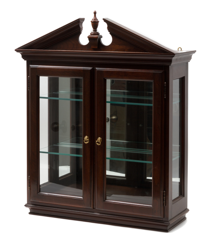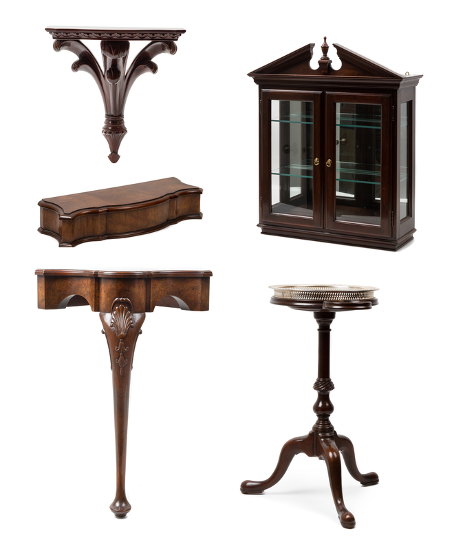 comprising a curio cabinet, shelf, sconce, corner table and a smoking table.
