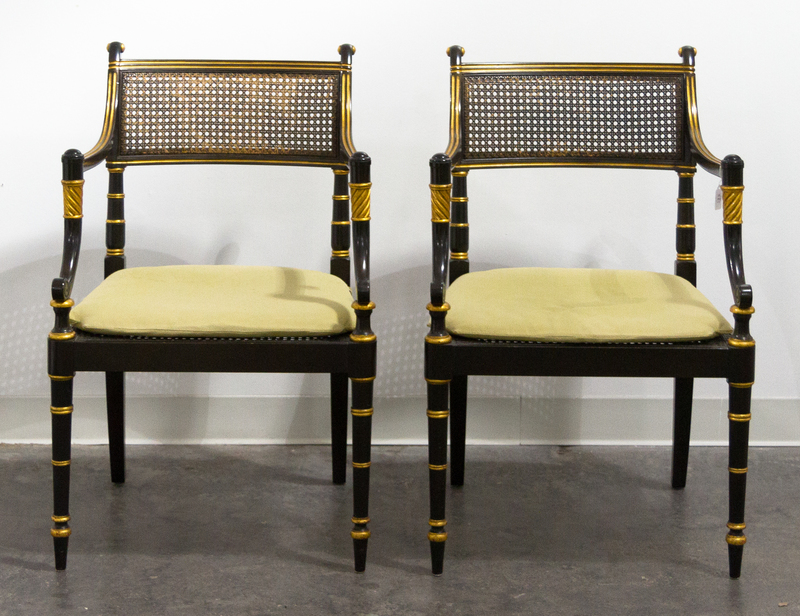 A Pair of Regency Style Ebonized Chairs, Baker