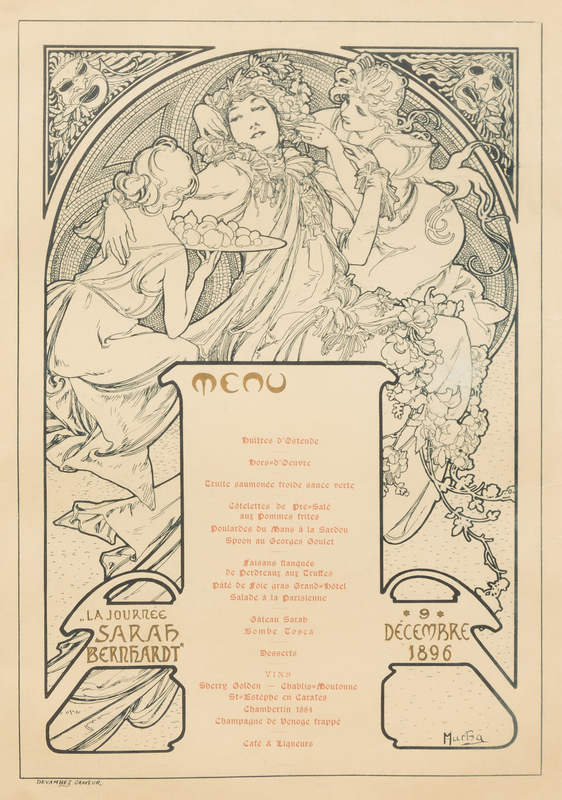 Menu pour La Journee Sarah Bernhardt, 9 decembre 1896, 1896