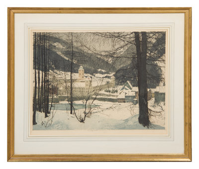 Old Castle Siebenstein, Austria; Opera in Vienna; Old Monastery in Lilienfield, Austrian Alps and Paris, Boulevard de la Madelaine, 1925 (a group of four works)