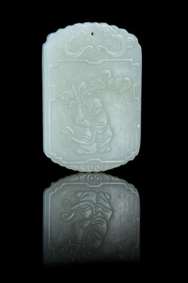 A Carved Pale Celadon Jade Plaque