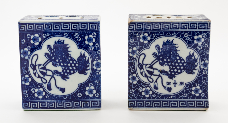 decorated on all four sides with quatrefoils depicting a mythical creature, surrounded by floral designs and a Greek key motif, one side with pierced interlocking coins.