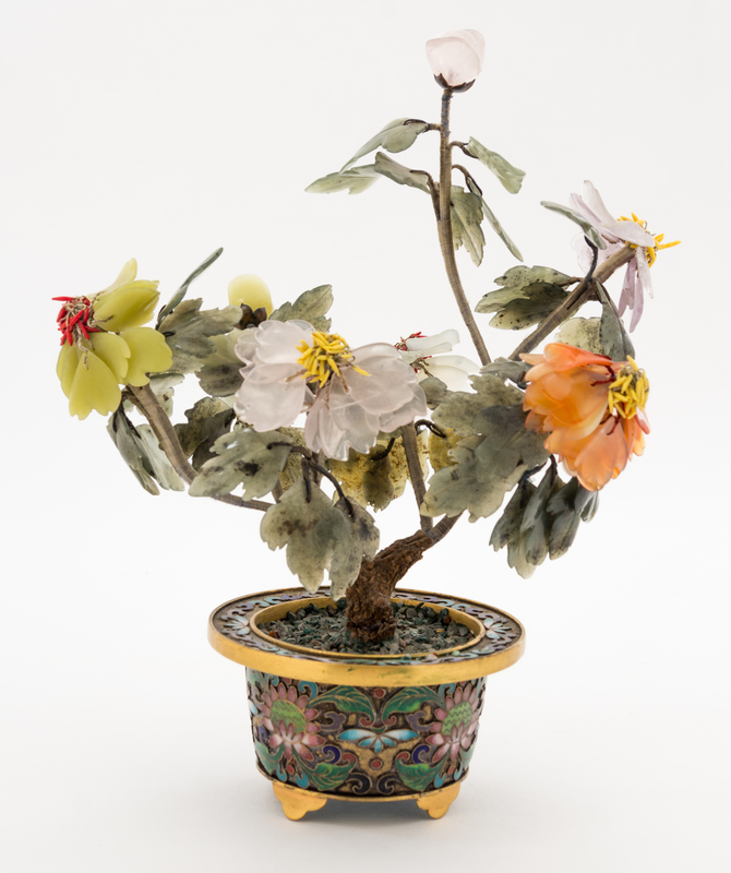 A Chinese Cloisonne Cache Pot with Hardstone Model of a Plant