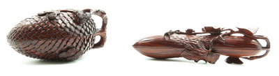 one in the form of a gourd, the other a pine cone, each with a lift off cover.