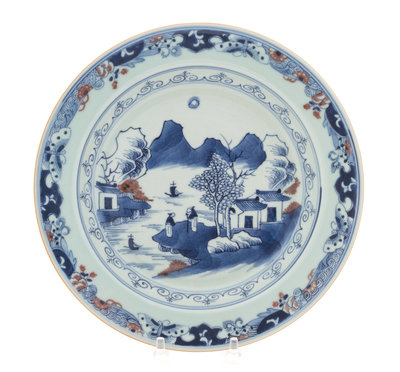 A Blue and White and Underglazed Red Porcelain Plate