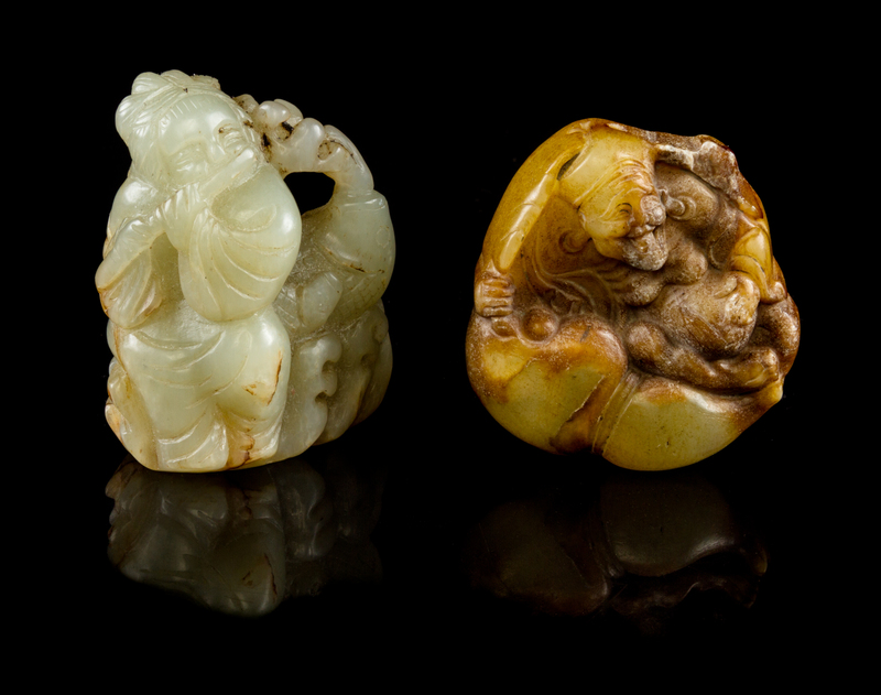 Two Carved Jade Figural Toggles