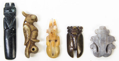 comprising a cicada, three zoomorphic toggles and a black stone example.