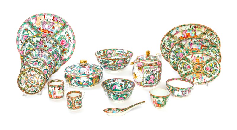 A Chinese Export Rose Medallion Porcelain Dinner Service