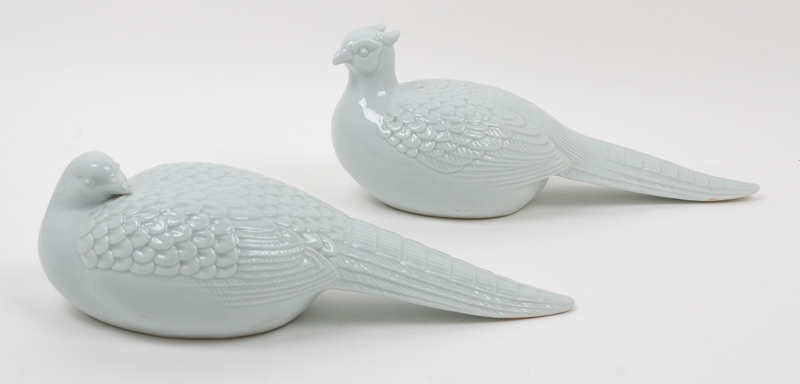 Two Japanese Blanc de Chine Porcelain Ornithological Figures