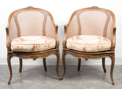 A Pair of Louis XV Style Walnut Corner Bergeres