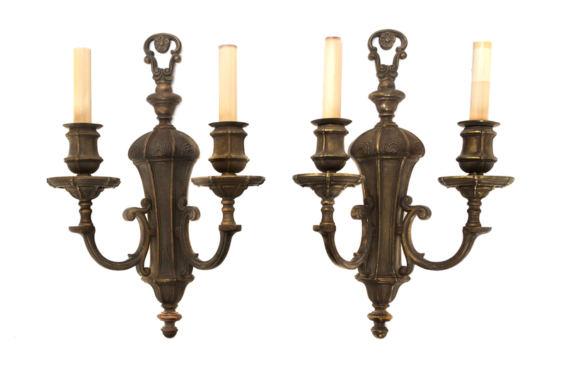 A Pair of Neoclassical Style Brass Two-Light Sconces