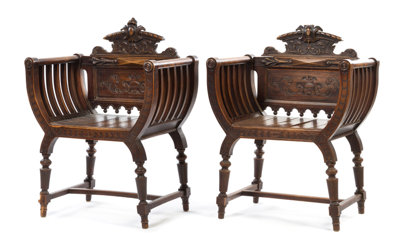 A Pair of Italian Walnut Savonarola Chairs