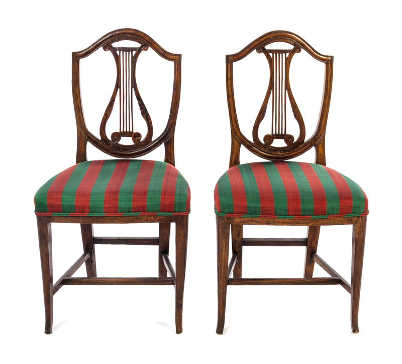 A Pair of Italian Walnut Lyre-Back Side Chairs