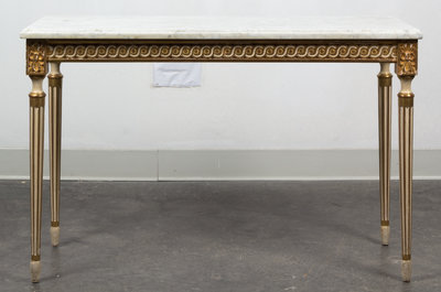 A Louis XVI Style Painted and Parcel Gilt Low Table
