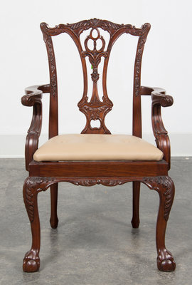 with upholstered seat, raised on cabriole legs ending in claw and ball feet.