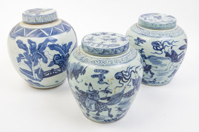 Three Blue and White Porcelain Jars and Covers