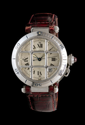 A Limited Anniversary Edition Stainless Steel Pasha Grille Wristwatch, Cartier, Circa 1997,