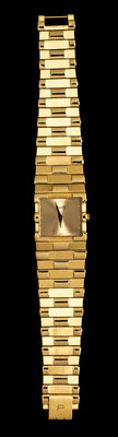 31.00 x 25.00 mm case dimensions including lugs, matted champagne dial signed PIAGET, applied gold dot numerals, gold dauphine hands, square case with alternating raised polished and recessed brushed finish, case back affixed with four screws, quartz movement, tapered bracelet with raised polished and recessed brushed finish links, box clasp.Case back stamp: 80301 C561 453165.