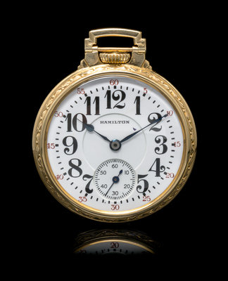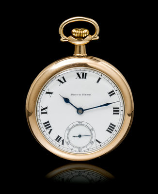 consisting of a Hamilton, circa 1926, 50.00 mm case diameter, porcelain dial signed HAMILTON, Arabic numerals with outer chapter ring calibrated to 60 units, blued steel spade hands, subdial for seconds at 6 o'clock, polished case back, stem wound and lever set 21 jewel nickel plated movement with five adjustments signed HAMILTON WATCH CO., together with a South Bend, circa 1914, 50.00 case diameter, porcelain dial signed SOUTH BEND, Roman numerals, blued steel spade hands, subdial for seconds at 6 o'clock, polished case, stem wound and set 19 jewel nickel plated movement with four adjustments signed SOUTH BEND WATCH CO.