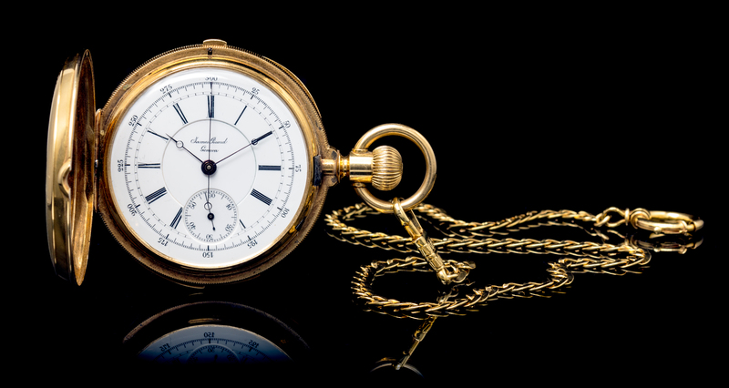 An 18 Karat Yellow Gold Hunter Case Chronograph Minute Repeater Pocket Watch, James Picard,