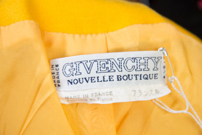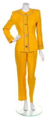 comprised of a long sleeve jacket with decorative gold cording, beads and front button closure, together with a matching front pleat pant.Each labeled: Givenchy Nouvelle Boutique.