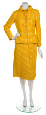 comprised of a long sleeve jacket with yellow button front closure, together with a matching straight skirt.Jacket labeled: Givenchy.
