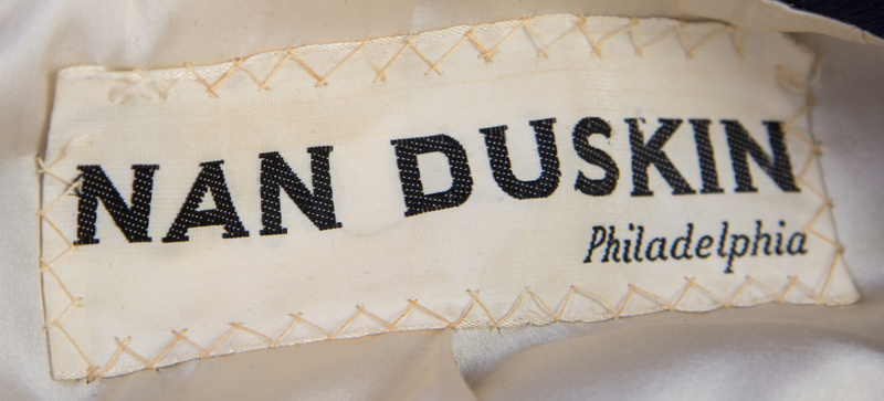 with long cuffed sleeves, a notched collar, contrasting white buttons and front patch pockets.Labeled: Norell.