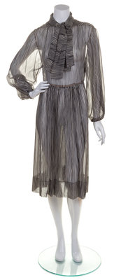 A Pauline Trigere Black and Ivory Striped Sheer Dress,