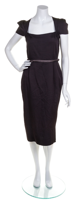 Fall 2005,with cap sleeves, a fitted bodice and a detachable leather belt.Labeled: Roland Mouret.