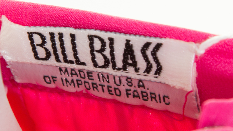with gathered pleats and a back zip closure.Labeled: Bill Blass.