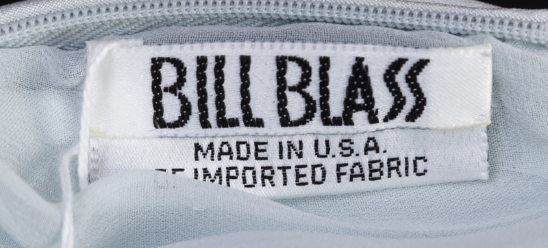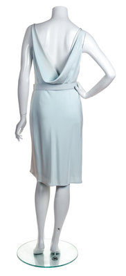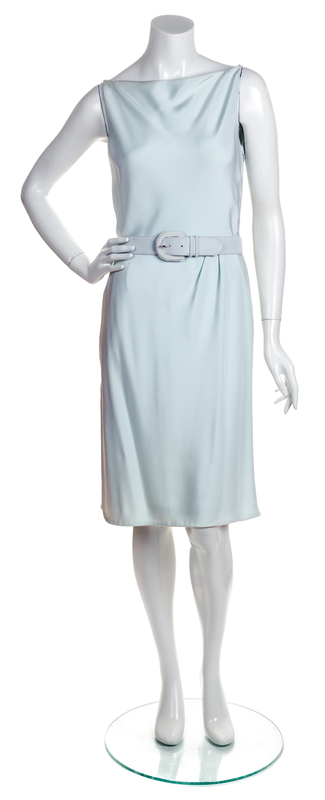 with a right side split hem, a draped low back , a side zip closure and a detachable matching belt.Labeled: Bill Blass.
