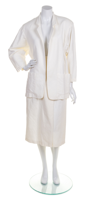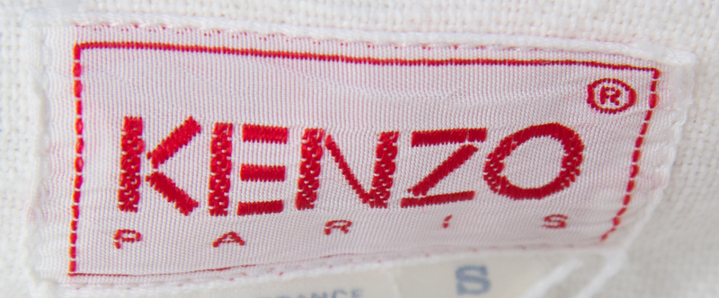 comprised of a jacket with patch pockets, together with a high waisted midi skirt with button closure. Labeled: Kenzo Paris.