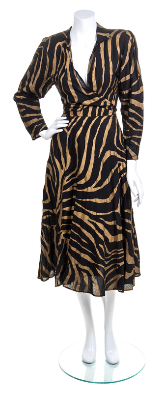 A Norma Kamali Zebra Print Linen Wrap Dress,