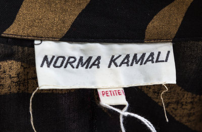 with long sleeves and front slip pockets.Labeled: Norma Kamali.
