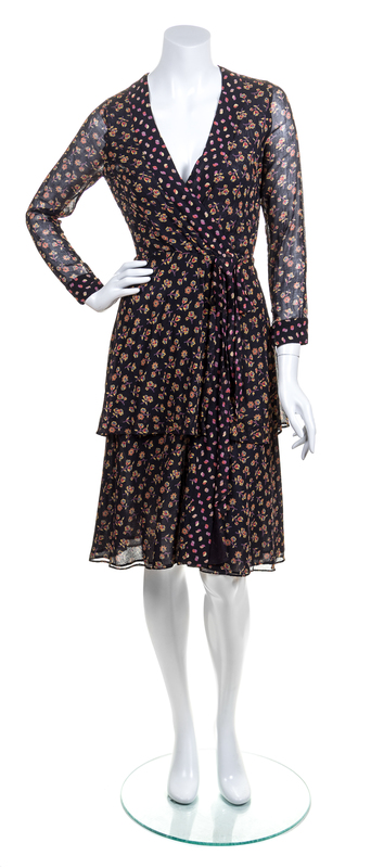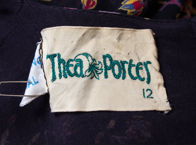 A Thea Porter Black Cotton Print Wrap Dress,
