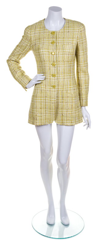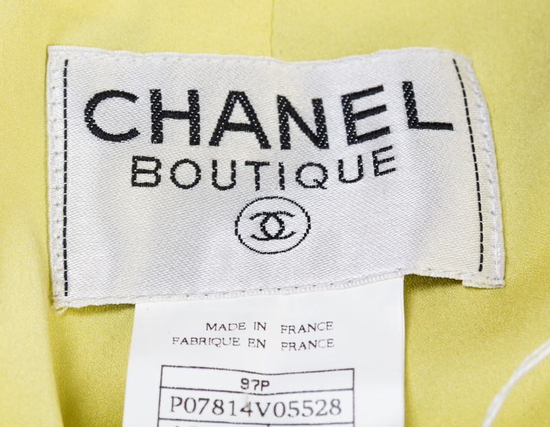 Spring 1997,with four front pockets and decorative logo buttons at the front closure and sleeve hem.Labeled: Chanel.