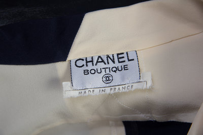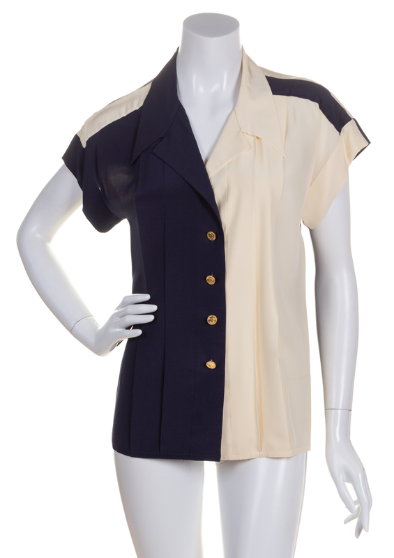 A Chanel Navy and Cream Silk Blouse,