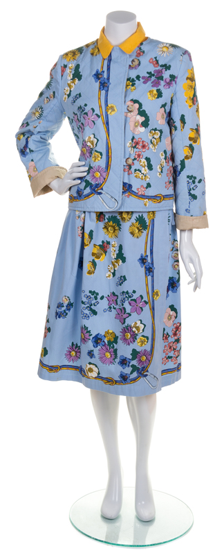An Hermes Blue Cotton Floral Skirt Ensemble,