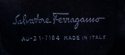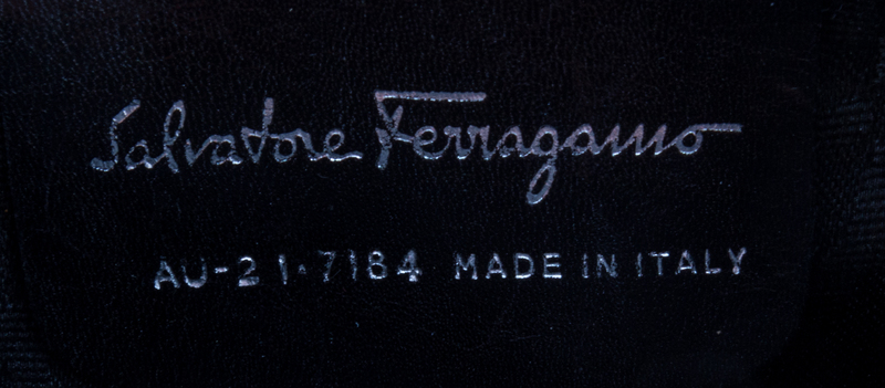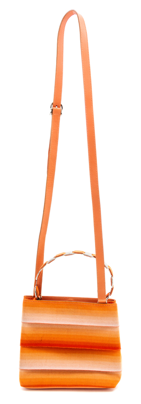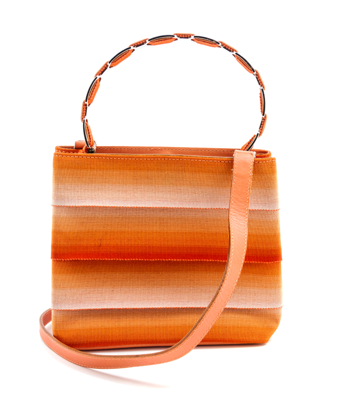 with a silvertone and ribbon handle, a removable orange leather strap and an interior zipper pocket.Stamped: Salvatore Ferragamo.